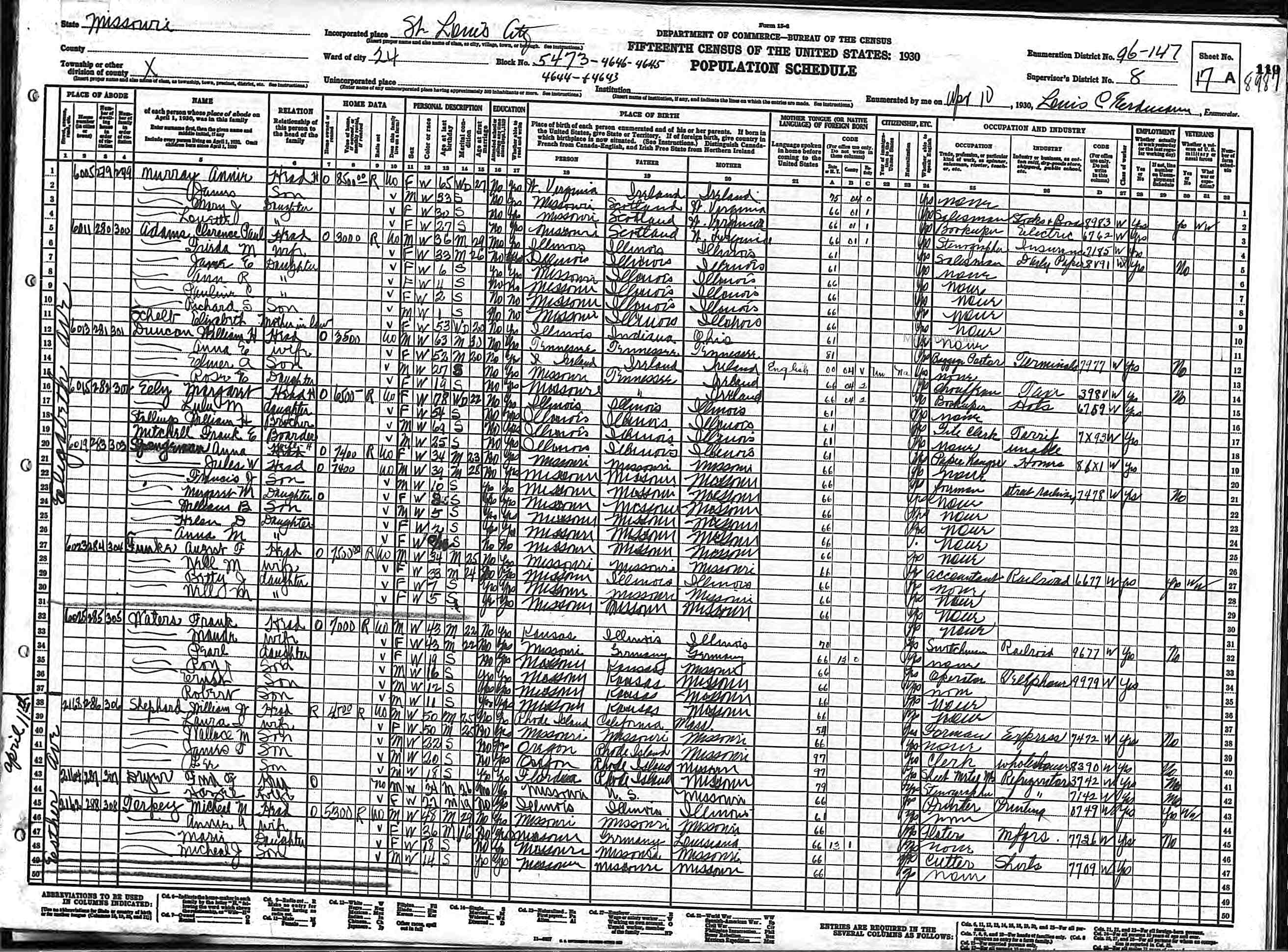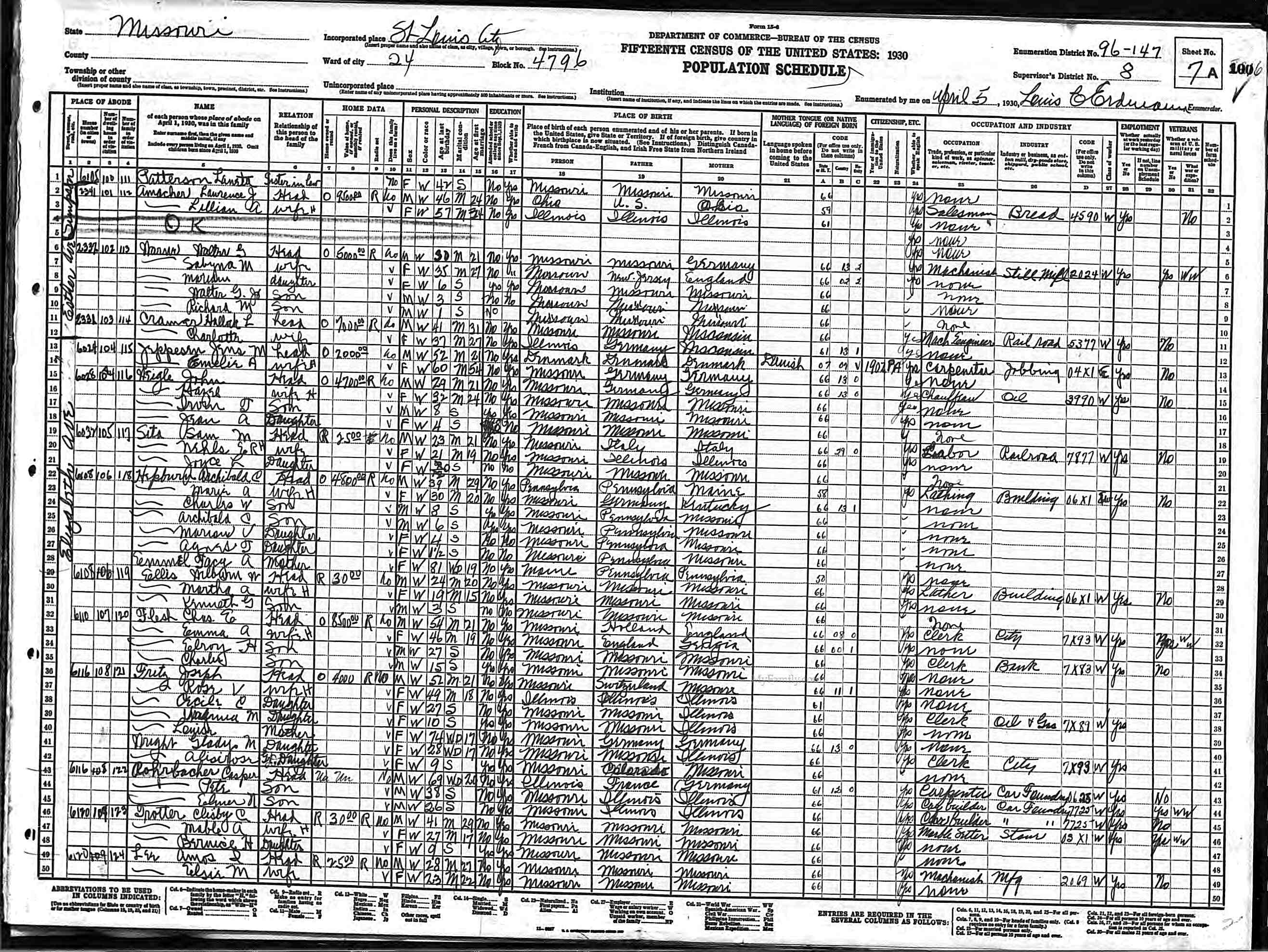 Below are some sample hand-written census sheets from the US Census of 1930 (click to enlarge):